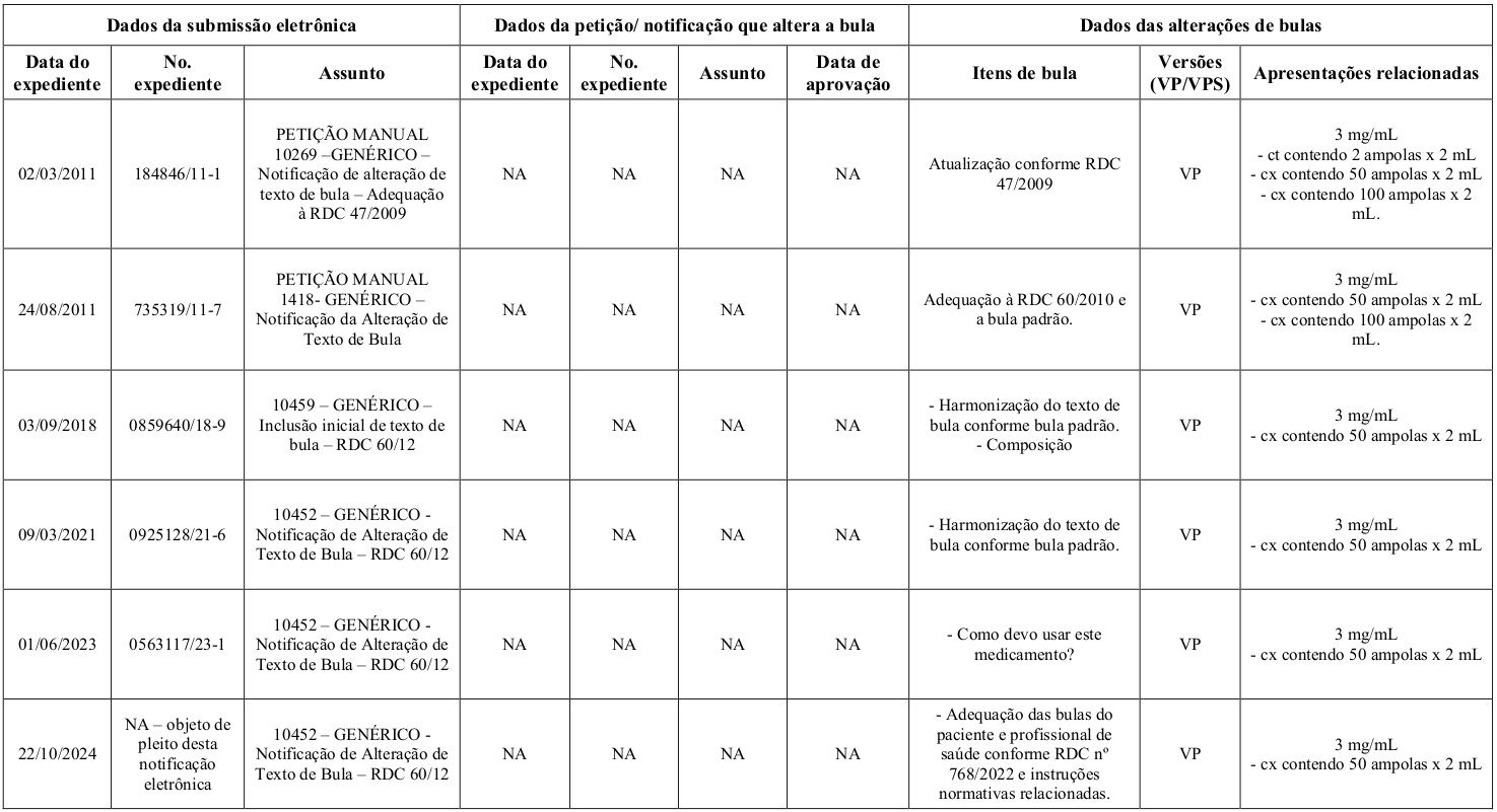 3 mg/mL – Caixa contendo 50 ampolas de 2 mL